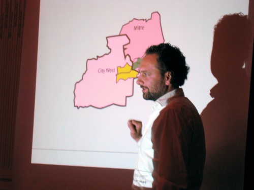 Nach einem Überblick von Wolfram Pütz zu realisierten Graft-Bauten, erläutert Thomas Willemeit eine Städtebaustudie zu Berlin-West, die 2008 im Auftag des Berliner Senats entstand. Eine ZukunftsVision zu der arg verbauten und ökonomisch-darbenden Gegend rund um Zoo / Breitscheidtplatz / Tiergarten.