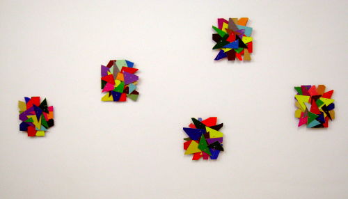 Beat Zoderer arbeitet stets anders, stets mit anderen oder anders mit bisherigen Materialien und setzt stets sein ureigenes Signet. seine Künstler-Handschrift. Unwichtig sind die Vorgaben, alles kann zur Kunst werden. Vor Jahren sah ich in der Daimler-Sammlung ein Klebeband-Objekt des Künstlers, das mir bestens in Erinnerung blieb. Benutzt werden: Gegenstände aus dem Baubedarf, aus Haushalt oder Büro: “Dinge ohne Gefühlswert, denen eine geometrische Grundform innewohnt. Ziel ist eine Systematisierung und Minimalisierung der gestalterischen Mittel, das Ergebnis ist jedoch ein üppig wucherndes Ornament” (Museum Ritter).