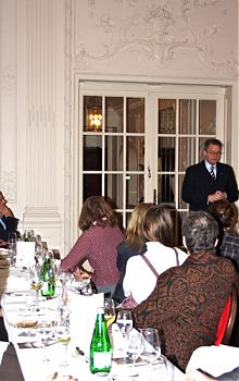 Applaudiert wurde unsere Jahresgabe, die Edition einer Photographie von Jeannot Simmen von 1982. Ein Bild über die Mauer ohne die Berliner Mauer. Joseph Beuys, Andy Warhol, Robert Rauschenberg (verdeckt), Heiner Bastian (Kunsthändler) und ein Assistent von Andy Warhol schauen vom 1. OG des Martin-Gropius-Bau über die Berliner Mauer zum ehemaligen Preußischen Landtag. Von den fünf Personen lebt heute noch einer, Heiner Bastian.