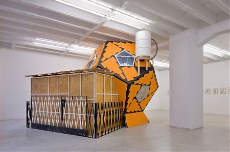Besuch in Berlins repräsentativen Galeriehaus in der Lindenstraße: Claes Nordenhake, profilierter und internationaler Galerist, führt uns mit seiner Mitarbeiterin durch die aktuelle Ausstellung: Marjetica Potrc hat Architektur und Skulpturen geschaffen, die Lebenssituationen in Israel reflektieren und dazu vorgefundene Baumaterialien und Bauformen nutzen. Ausgestellt sind Zeichnungs-Konvolute, die mit Textversatzstücken auf Lebenssituationen in Israel rekurrieren. Die Arbeiten beeindrucken uns, weil sie keine plakativen Stellungnahmen hervor kehren.