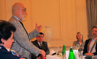 Tolle Resonanz, großes Interesse. 75 Gäste und Michael Schindhelm überzeugt rhetorisch souverän. Zwei Jahre war er tätig beim Herrscher, dem Scheich in Dubai, in einem der arabischen Emirate. Seine Aufgabe: Aufbau einer Opern-Spielstätte, eines Museum der Weltkultur. Dubai ist ein Anachronismus: eine absolute Monarchie mit etwa 90 % Ausländern, ein Wüstenstrich mit Küste, ein Staat mit Toleranz, global führend im Finanz-Business. Ein Land, das heute kein Öl mehr besitzt, sich aber zum internationalen Immobilien- und Finanz-Investorplatz und Airport-Hub entwickelt.