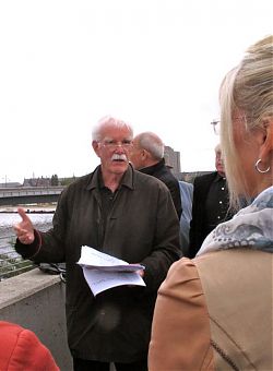 Welchen Charme hätte demgegenüber die Verwirklichung der Ungers-Pläne für Berlin: Die nach Süden exponierte Hafenfront könnte Reminiszenzen an die Hamburger Alsterbebauung oder Venedig wachrufen. Aber auch Prof. Dr. Stimmann ist skeptisch: die Ungers-Planung rechnet sich offenbar für Investoren nicht. Die großen Grundstückseigner Bahn und Land müssten eine kleinteiligere, investorenfreundlichere Bebauung zulassen, damit sich Urbanität um den Hauptbahnhof entwickeln kann. Durch Wind und etwas Regen, ein spannender, lehrreicher KulturTermin. Nach anderthalb Stunden gehen wir, wohl jeder mit seiner eigenen Phantasie zur zukünftigen Entwicklung, angeregt nach Hause.